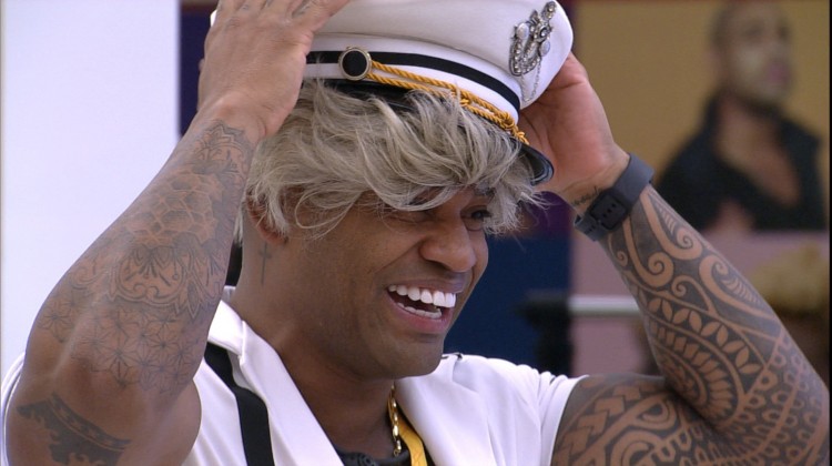 ELA VEIO: a peruca para Cezar Black! O cabeça branca da lancha está entre os brothers e promete animar a Festa do Líder desta quarta-feira, 22/2, que tem como tema as duas coisas que Cezar mais gosta: navegação e Carnaval.
